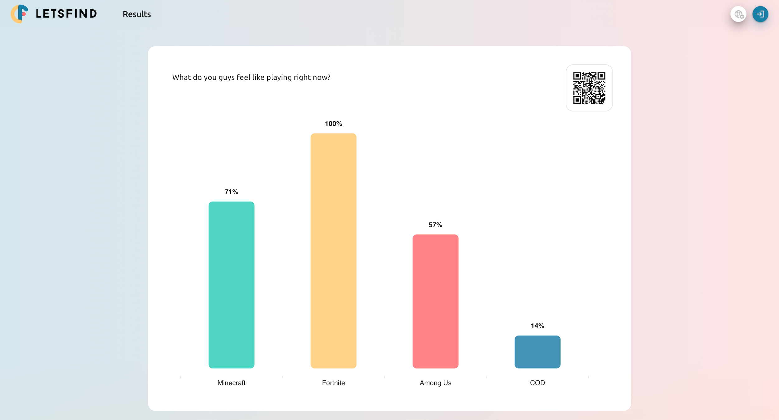 - Watch it happen: Results update in real-time as people vote (btw. the QR code is shown until the first few votes come in)